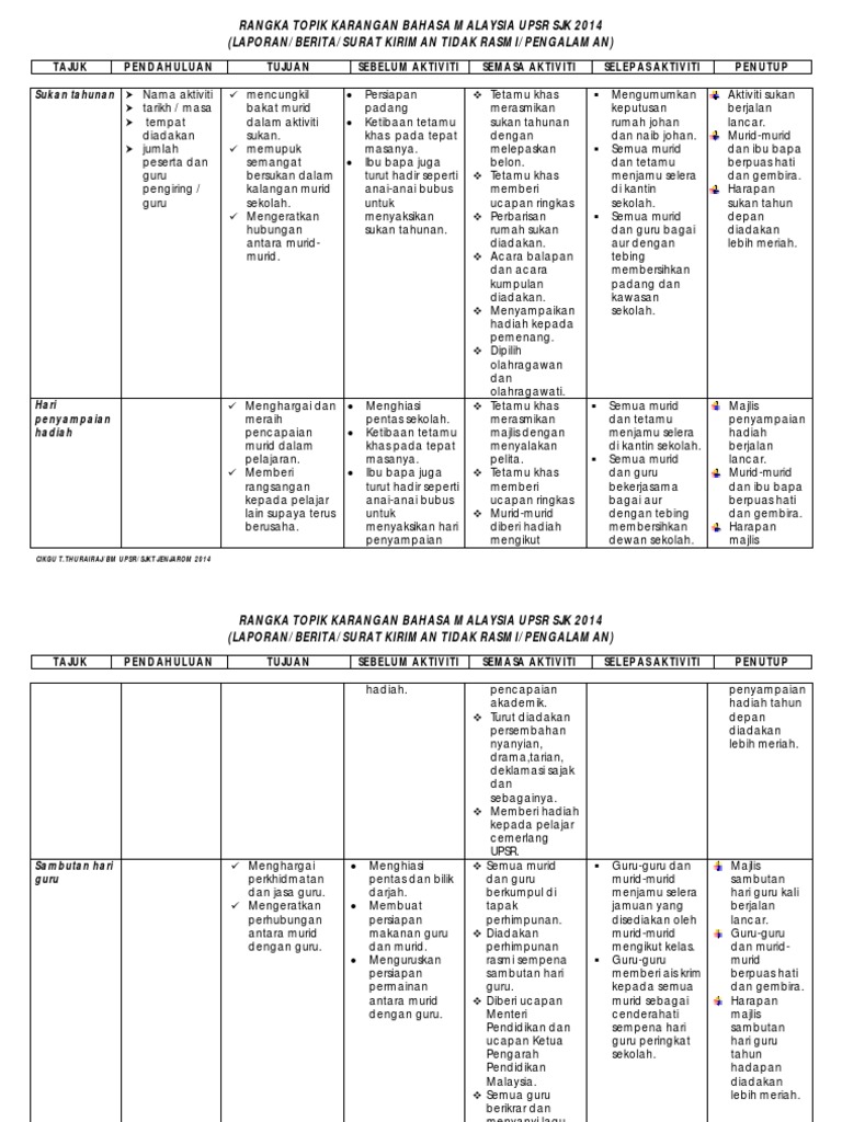 Savesave ramalan upsr 2018.pdf for later. Pemarkahan karangan umum dan karangan upsr. Berikut dikongsikan contoh karangan bahasa melayu berbentuk ucapan yang bertajuk ucapan hari guru. 0 ratings0% found this document useful (0 votes). Sila klik pautan yang diberi untuk proses muat turun (direct download) yang pantas.