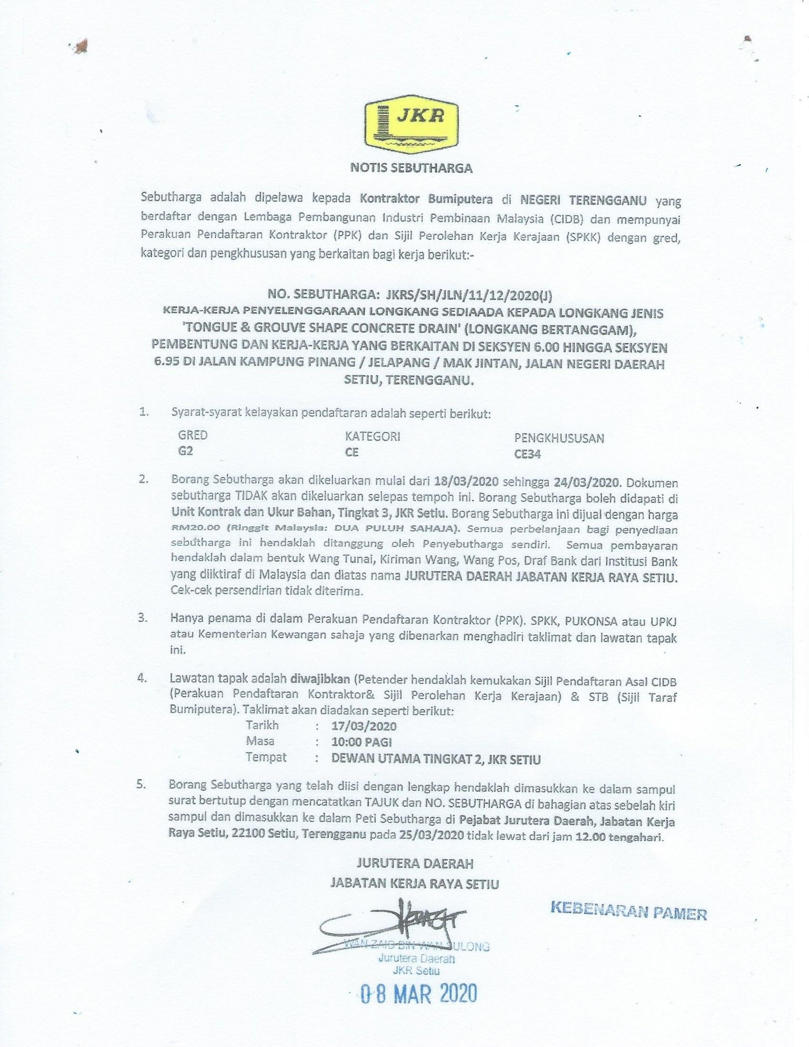 Related : Tender Majlis Daerah Setiu - Jkn Terengganu - Majlis daerah setiu was established on 1st june 1985 following the state of terengganu government notice no..